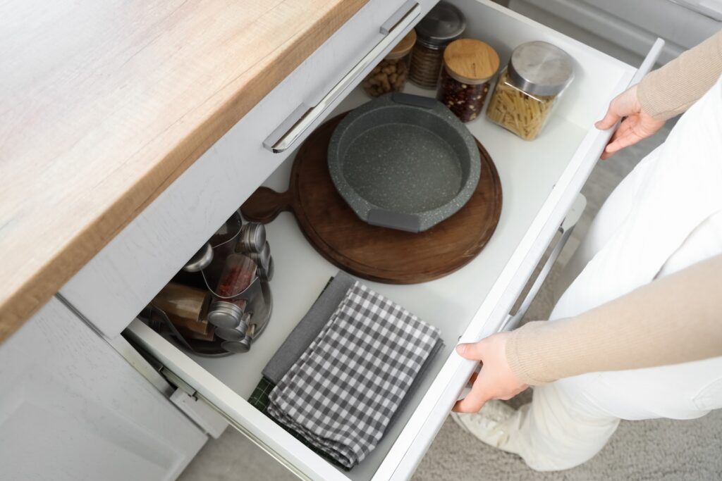 For utensil drawers, apply a simple rule: if you have three spatulas, keep two. Repeat across the board.